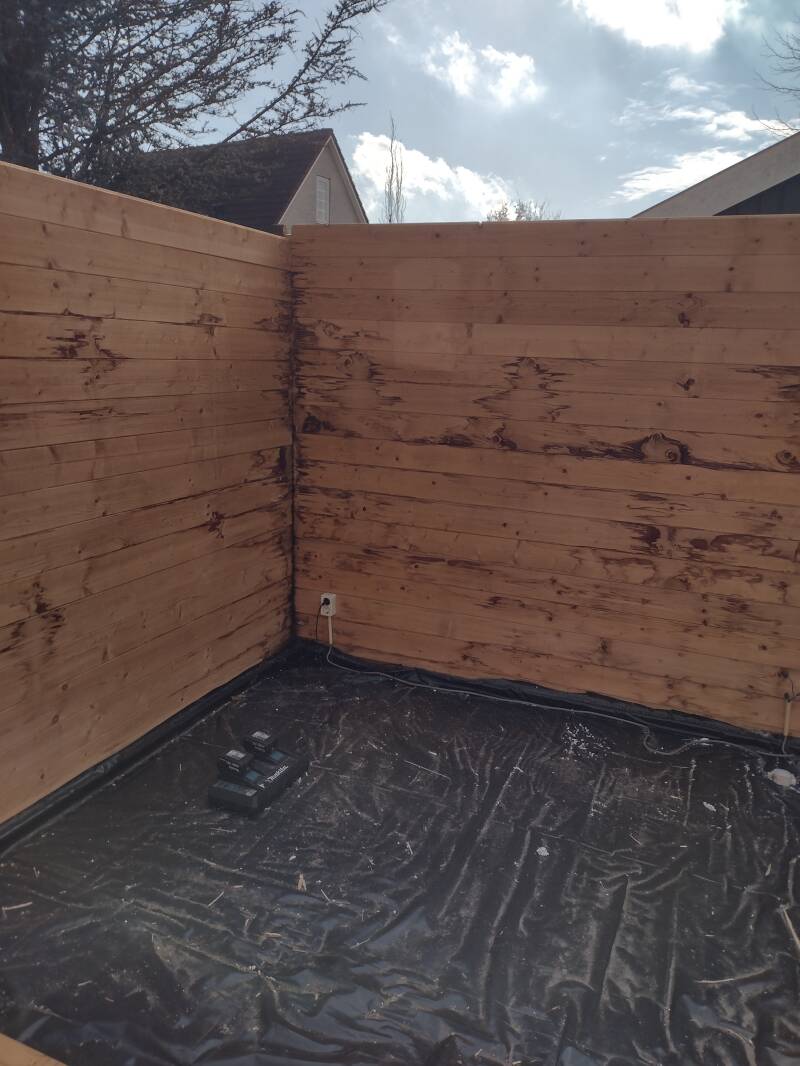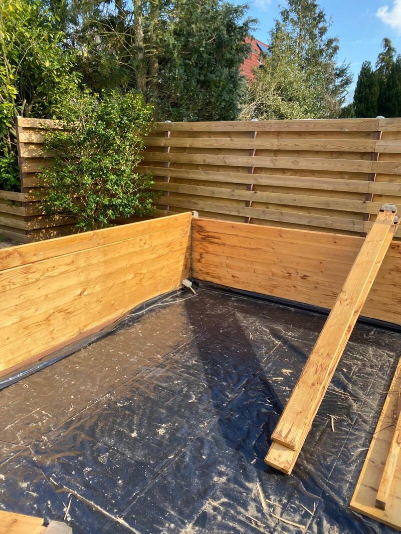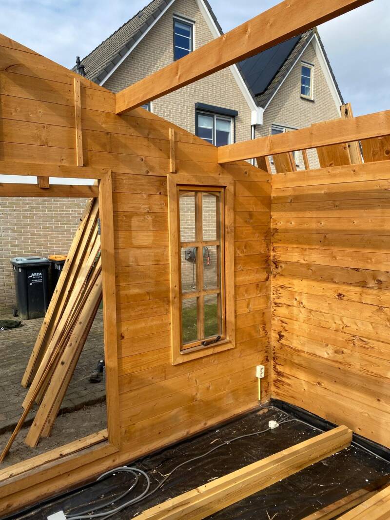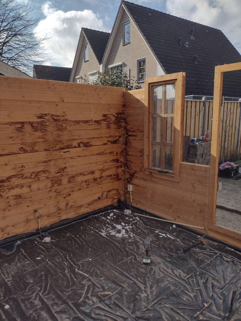 Met dakpanplaten en hardhouten funderingsbalken